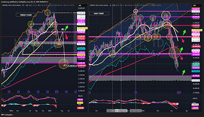 On the daily and weekly chart NQ looks bearish and looks ready to tank down to the enxt strong support level, 24,000.
